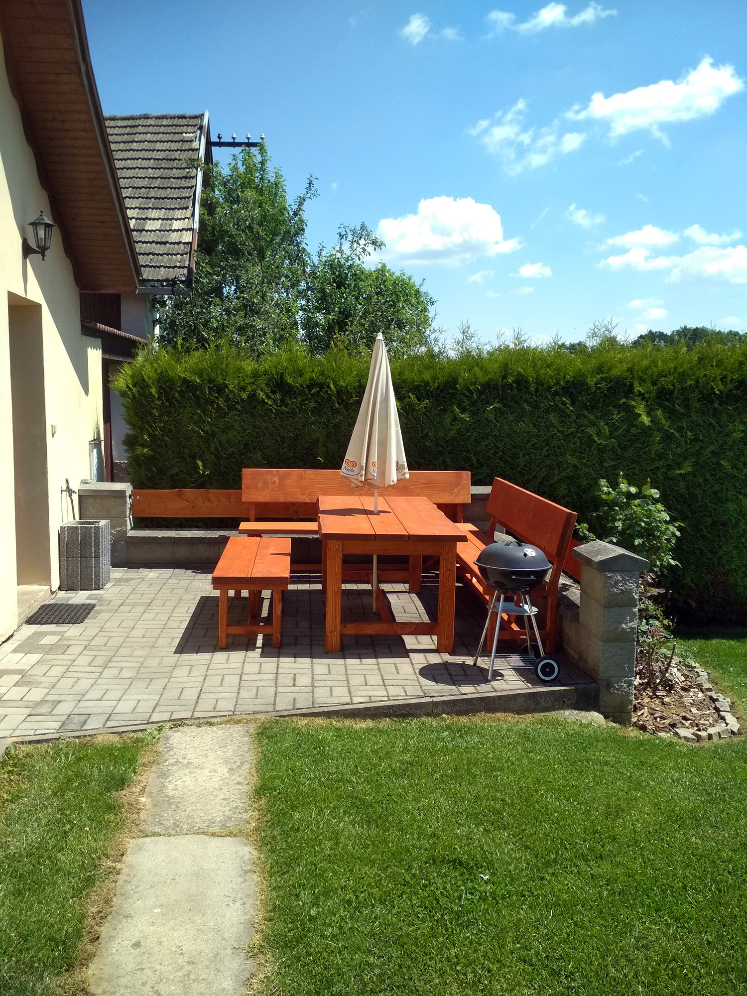 Příjemné posezení navíc nabízí terasa před chalupou.